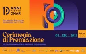 Martedì 05 Dicembre p.v. dalle 16.30 si svolgerà presso l’Acquario Romano di Roma la Cerimonia di Premiazione della X Edizione del Premio OMaR per la comunicazione sulle malattie e i tumori rari. Ideato da OMaR – Osservatorio Malattie Rare, il Premio è organizzato in collaborazione con Centro Nazionale Malattie Rare dell’Istituto Superiore di Sanità, CNAMC-Coordinamento Nazionale delle Associazioni dei Malati Cronici di Cittadinanzattiva, Fondazione Telethon, Orphanet Italia e SIMeN-Società Italiana di Medicina Narrativa e annovera tra i partner Ability Channel, FERPI-Federazione Relazioni Pubbliche Italiana e Festival cinematografico “Uno Sguardo Raro”.