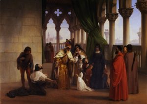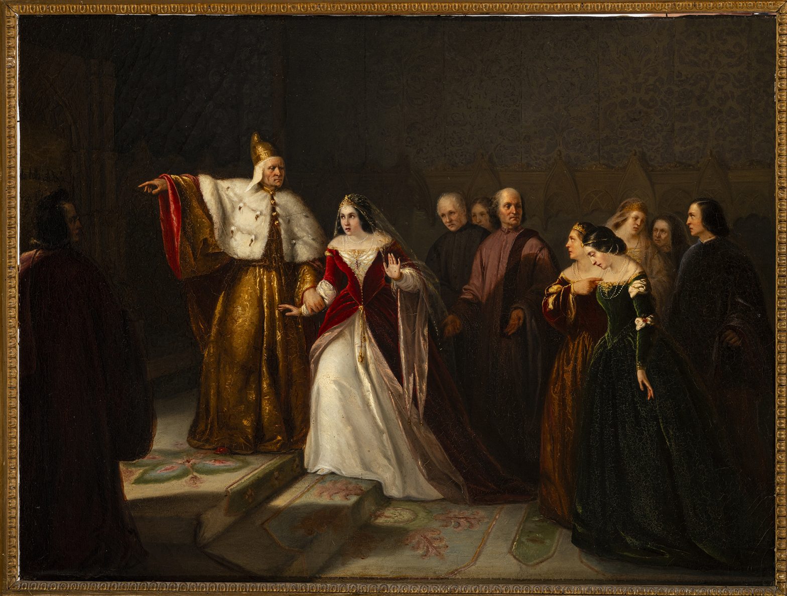 La quarta sezione “Miti e revival del mondo dogale” vede protagonista il quadro di Francesco Hayez I due Foscari, in prestito dalla Galleria degli Uffizi, che ben illustra lo strazio vissuto da Marina Nani, seconda moglie del doge Francesco Foscari (1423-1457), quando il figlio Jacopo venne incarcerato, per aver accettato doni e denari da gentiluomini e persino dal duca di Milano. Essendo egli figlio del doge, tale operazione gli era preclusa: si configurò pertanto il reato di peculato. A nulla valsero le suppliche della donna. La ragion di stato prevaleva su tutto. A questa vicenda Lord Byron dedicò il dramma I due Foscari, rappresentato poi a teatro da Giuseppe Verdi nel 1944.