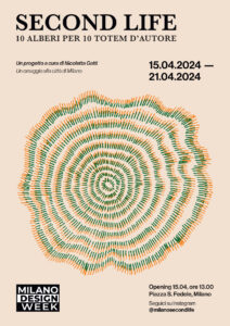 Durante la Milano Design Week 2024, nel cuore della Milano Design Week 2024, in Piazza San Fedele, si inaugura la mostra “Second Life: 10 alberi per 10 totem d’autore”, un progetto nato in seguito al violento nubifragio che ha colpito la città il 25 luglio 2023, causando l’abbattimento di oltre 5.000 alberi.
