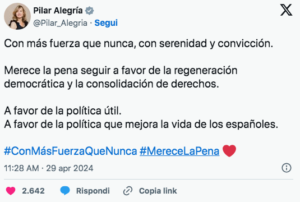 Sanchez emphasized that we live in a society that teaches us to move forward “at all costs,” but there are times when the only way to progress is to stop and decide clearly where we want to go. “My wife and I know that this smear campaign will not end, it is serious, but not the most important thing, we can endure it,” added the leader, thanking sincerely for the solidarity and empathy received. He expressed gratitude to the Socialist Party and stated that the mobilization in Spain in recent days was “decisive” for his decision.