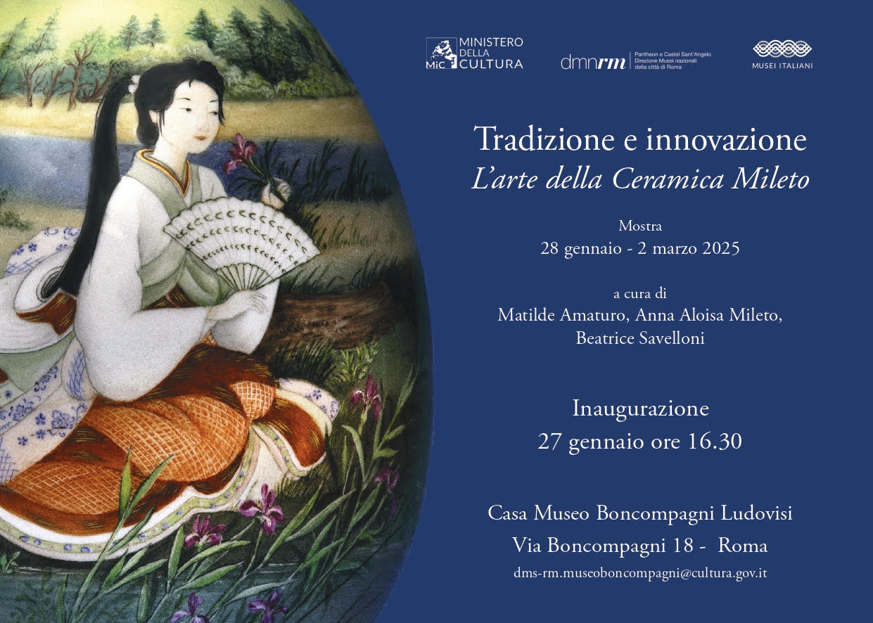 In mostra presso la Casa Museo Boncompagni Ludovisi a Roma, la delicata esposizione curata da Matilde Amaturo, Anna Aloisa Mileto e Beatrice Savelloni celebra il lungo percorso ceramico di Agatina Librando Mileto e delle sue figlie. Le opere della Manifattura L’Arte della Ceramica Mileto, ancora attiva, trovano spazio nel suggestivo contesto del villino Boncompagni Ludovisi, dialogando con le collezioni storiche e contemporanee presenti nel museo.