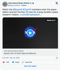 La missione di SpaceX è finalmente giunta alla Stazione Spaziale Internazionale (ISS) per riportare sulla Terra gli astronauti della NASA, Barry Wilmore e Sunita Williams, rimasti in orbita dallo scorso giugno.