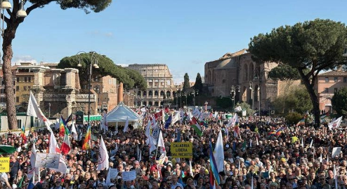 Il Movimento 5 Stelle ha organizzato un imponente corteo a Roma contro il riarmo, con la partecipazione di migliaia di persone. Il leader Giuseppe Conte ha preso la parola, definendo il piano di riarmo come una follia e invitando la folla a dire no. Durante il suo intervento, Conte ha sottolineato l’importanza della pace e della democrazia, ribadendo il rifiuto del riarmo e la necessità di maggiori investimenti in settori vitali come la sanità, la scuola e il lavoro.