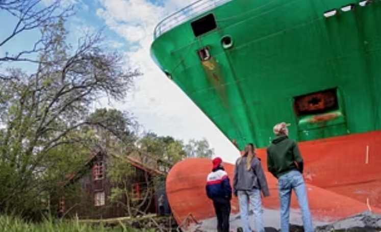 Nave cargo incagliata nel giardino: l’incredibile risveglio di un uomo in Norvegia