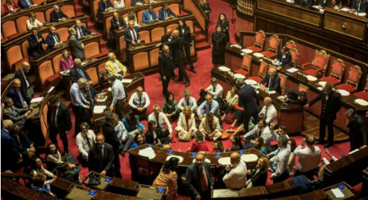 Dopo un minuto di silenzio in memoria di Ernesto Pellegrini, ex presidente dell’Inter, i senatori di Pd, M5S e Avs hanno protestato sedendosi a terra al centro dell’Aula, intonando cori di disapprovazione. La Russa ha inizialmente cercato di mantenere l’ordine, ma alla fine ha dovuto sospendere i lavori.