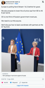 L’Unione Europea ha annunciato il suo 18° pacchetto di sanzioni contro Mosca, focalizzandosi sul price cap del petrolio russo. Questa iniziativa prevede una riduzione del price cap da 60 a 45 dollari al barile, con l’obiettivo di limitare le entrate di Mosca, che provengono principalmente dalle esportazioni di greggio. Attualmente, queste esportazioni costituiscono un terzo delle entrate statali russe, rendendo il prezzo del petrolio un tema cruciale nella guerra in Ucraina e nella crisi energetica globale.