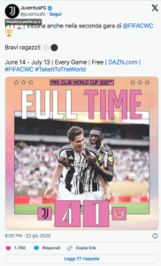 Nella ripresa, Yildiz ha nuovamente colpito, segnando il suo secondo gol al 69′. Dopo un passaggio di Kolo Muani, il turco ha sterzato con abilità, lasciando a vuoto la difesa e il portiere del Wydad, per poi appoggiare la palla in rete con un semplice tocco. Infine, nel recupero, Dusan Vlahovic, subentrato in campo, ha procurato un rigore e lo ha trasformato, chiudendo la partita sul 4-1.