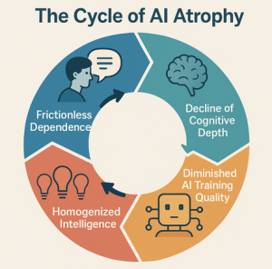 Questo fenomeno assume una rilevanza ancora maggiore se si considera il contesto attuale. Il web è oggi saturo di contenuti generati anche da IA, di video-clip virali, di articoli con scarsa verifica, di post brevi e iper-ottimizzati per l’engagement. Si crea così un circolo vizioso: i modelli apprendono da dati che sono in parte generati da altre IA o da contenuti “facili”; questi modelli poi producono nuovi testi, che possono essere ricampionati come dati per altri modelli; e così via. La qualità del “carburante” dell’IA rischia di deteriorarsi.