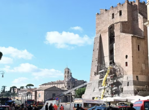 Roma, crolla parte della Torre dei Conti ai Fori Imperiali