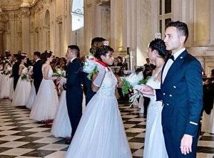 prove di ballo, accostamento tra gli allievi della Marina e le “Debuttanti” selezionate per il Ballo alla Venaria;