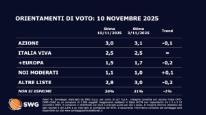 Secondo la rilevazione condotta da Swg per il Tg La7 e pubblicata in data 10 novembre, lo scenario politico italiano mostra alcune variazioni negli orientamenti di voto che meritano attenzione.
