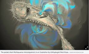 📌 Lo squalo tasca è una piccola specie di squalo di profondità, estremamente rara e finora conosciuta solo grazie a due individui raccolti in epoche e luoghi diversi. L’esemplare che si trova nel bunker in Louisiana appartiene alla specie Mollisquama mississippiensis, distinto da un secondo esemplare appartenente a un’altra specie del medesimo genere e conservato in un museo europeo.
