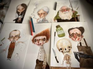 Le sue illustrazioni non accompagnano i racconti: li interpretano, li deformano, li incarnano. I personaggi sembrano burattini pronti a muoversi, creature sospese tra il museo di storia naturale e il teatro anatomico. Il riferimento a John Tenniel e alle illustrazioni di Alice nel Paese delle Meraviglie non è casuale: qui lâimmagine non è subordinata al testo, ma contribuisce a costruirne il senso.