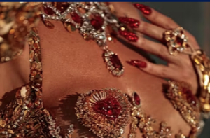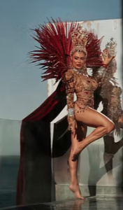 La creazione, una fusione unica tra costume di samba e alta moda internazionale, comprende un reggiseno decorato con cristalli e microperline ricamate a mano, motivi floreali intrecciati e dettagli di grande impatto visivo. Questa scelta stilistica ha trasformato il tradizionale costume da regina di batteria in un vero e proprio pezzo di alta gioielleria indossabile, celebrando al contempo la cultura festiva brasiliana e l’estetica del lusso globale.