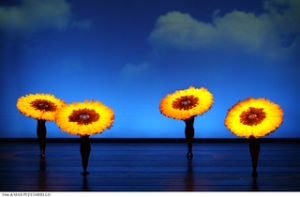 Anche stavolta sarà affiancato,come sempre, dalla moglie e codirettrice della compagnia Cynthia Quinn e presenterà dodici danzatori-acrobati che si alternano sulla scena (“che hanno come sempre un grande addestramento fisico ma che imparano anche ad essere attori, a danzare le immagini, all’occorrenza a improvvisare, anche se molto dipende dal ballerino, nel senso che ci sono danzatori più creativi e altri meno creativi, comunque mi piace creare un ambiente giocoso in cui loro hanno la libertà di improvvisare”), due atti per un totale di un’ora e mezza di danza, acrobazie,azzardi, illusione visiva in un viaggio che cavalca la musica da Vivaldi alla musica elettronica, passando per echi di musica tradizionale indiana fino a Peter Gabriel.